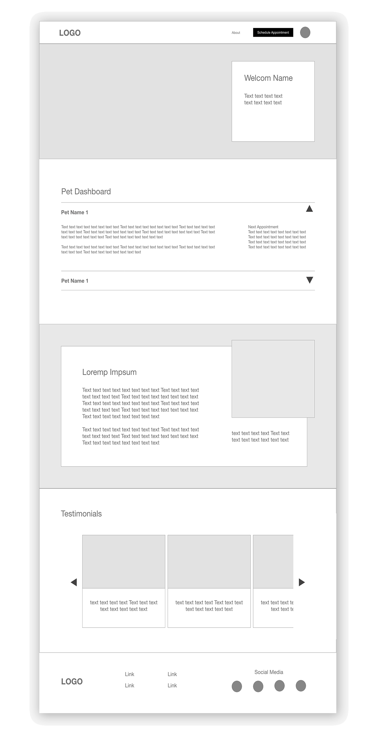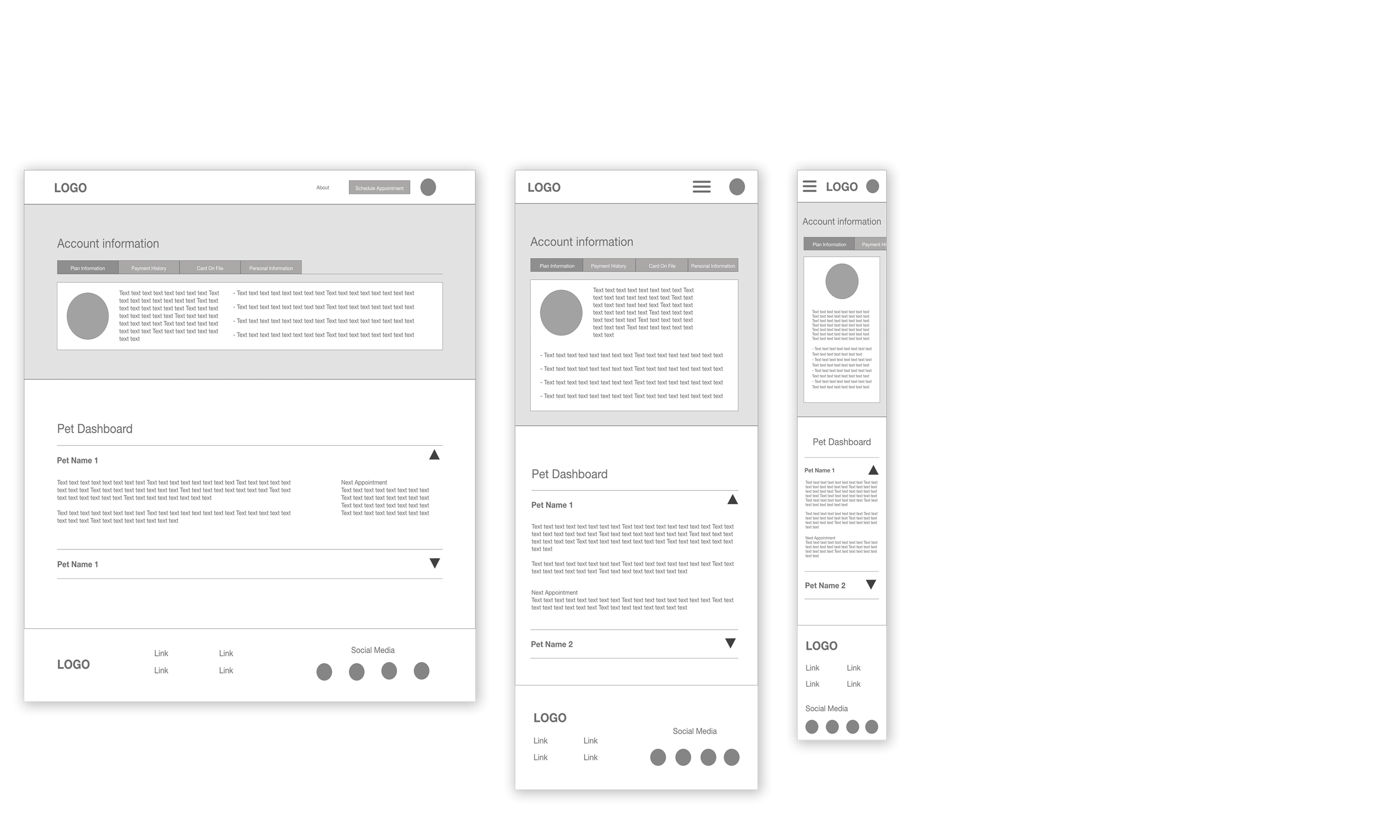 Created wireframes for various screen sizes, ensuring the information on the pages provided the users with their most relevant information. Realizing that new visitors looking for information about the clinic would have different needs than users who already have an account.